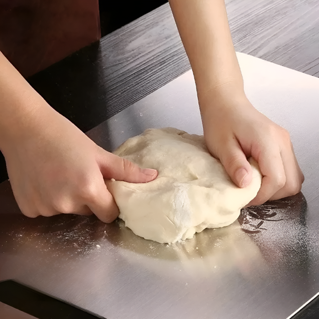 Enhance your kitchen with the titanium cutting board, designed to provide a non-porous, hygienic, and durable surface for all your food preparation needs. Made from high-quality stainless steel, this cutting board ensures long-lasting performance, while its titanium-infused surface helps maintain food safety by preventing bacterial buildup.
