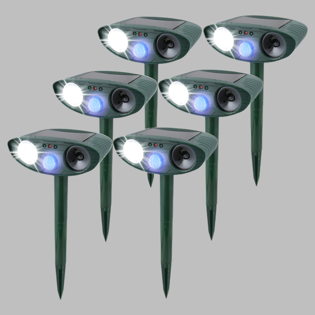 - Function: Ultrasonic emitter + flashing LED deterrent