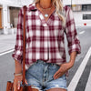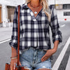 Brighten your wardrobe with this women's plaid blouse featuring long sleeves and an elegant V-neck. Designed to offer comfort and style, this blouse features a soft and flowing fabric with an elegant plaid pattern, perfect for transitioning from work to the weekend. Its relaxed yet refined cut offers effortless versatility and simple style.
