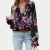 Floral blouse with V-neck for woman