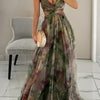 Turn heads this season with this sexy long dress featuring a V-neck, designed for effortless summer glamour. Featuring an eye-catching front lace-up closure, V-neckline, and a cool sleeveless silhouette, this printed chiffon dress is perfect for beach parties, summer evenings, or relaxing on vacation.