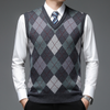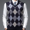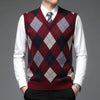 The sweater is an elegant and versatile addition to your wardrobe. Featuring a classic V-neck and sleeveless design, this knitwear piece offers comfort and elegance. Wear it layered over a shirt or alone, seamlessly transitioning from casual to semi-formal settings.