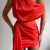 El vestido mini Fleur es ideal para quienes buscan un look sofisticado y moderno. Con su diseño asimétrico y el material satinato, ofrece un ajuste fluido y una elegancia atemporal, perfecto para eventos especiales o noches elegantes.